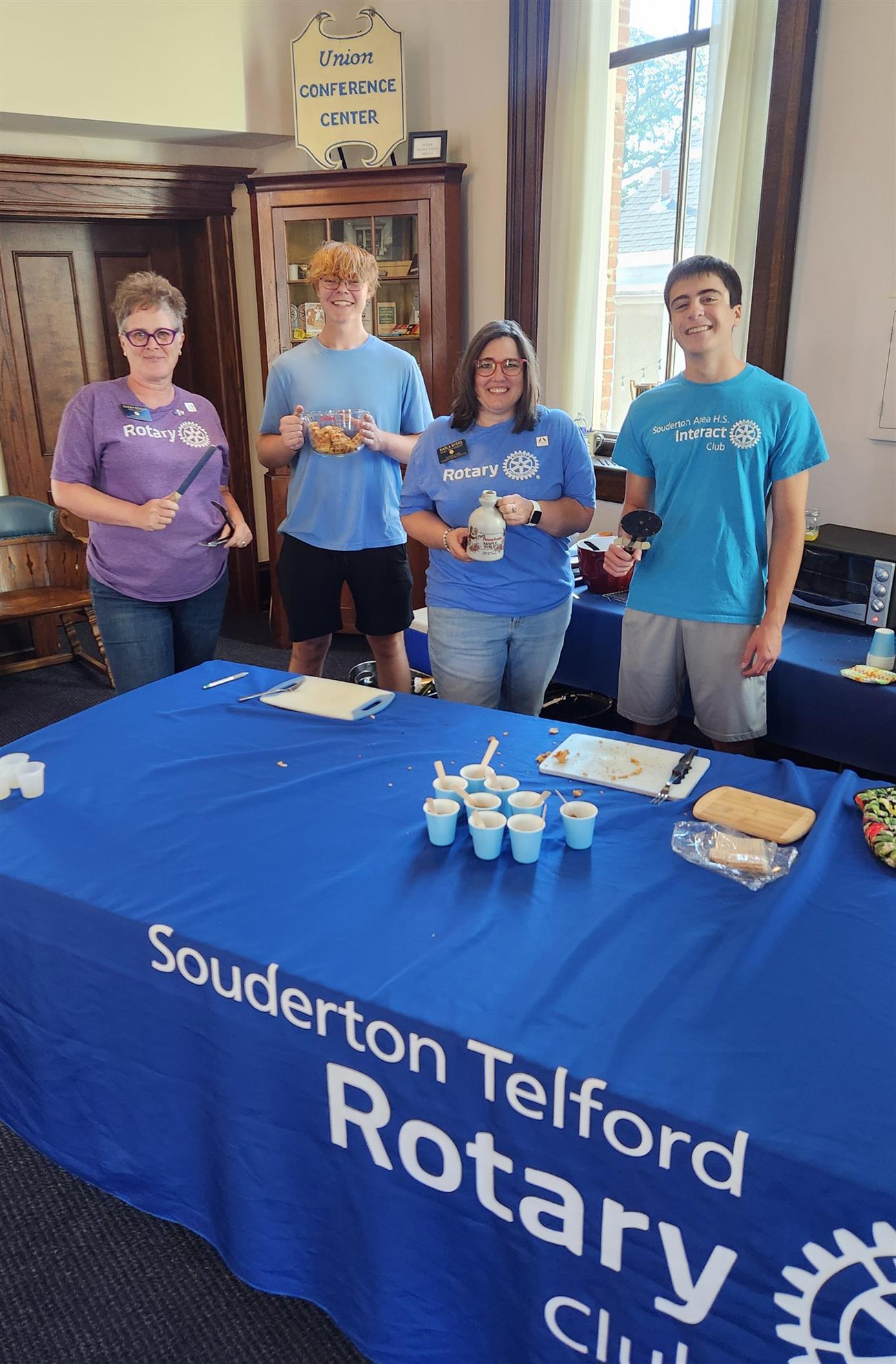 President Sarah Bergin, Rotary Member Karla Myers, and two Souderton Area High School Interact students proudly represented our club while volunteering at the Bean Bag Food Crawl.