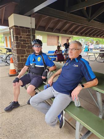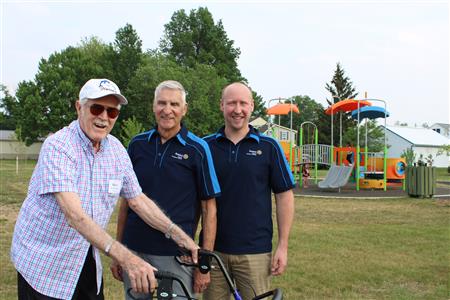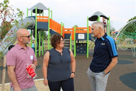 We celebrated with major park Sponsors, Dignitaries, and Rotarians the progress of the park renovation. A light dinner followed by a ribbon cutting, capping off the celebration with delicious ice cream being served by our club at Concert Sundaes.